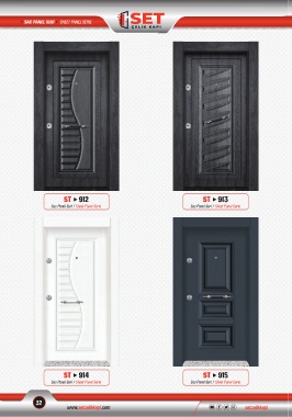 ► SAC PANEL SERİ ► SHEET PANEL SERIE ST ▶ 912 ST ▶ 913 Sac Panel Seri / Sheet Panel Serie Sac Panel Seri / Sheet Panel Serie ST ▶ 914 ST ▶ 915 Sac Panel Seri / Sheet Panel Serie Sac Panel Seri / Sheet Panel Serie 32 www.setcelikkapi.com setcelikkapi